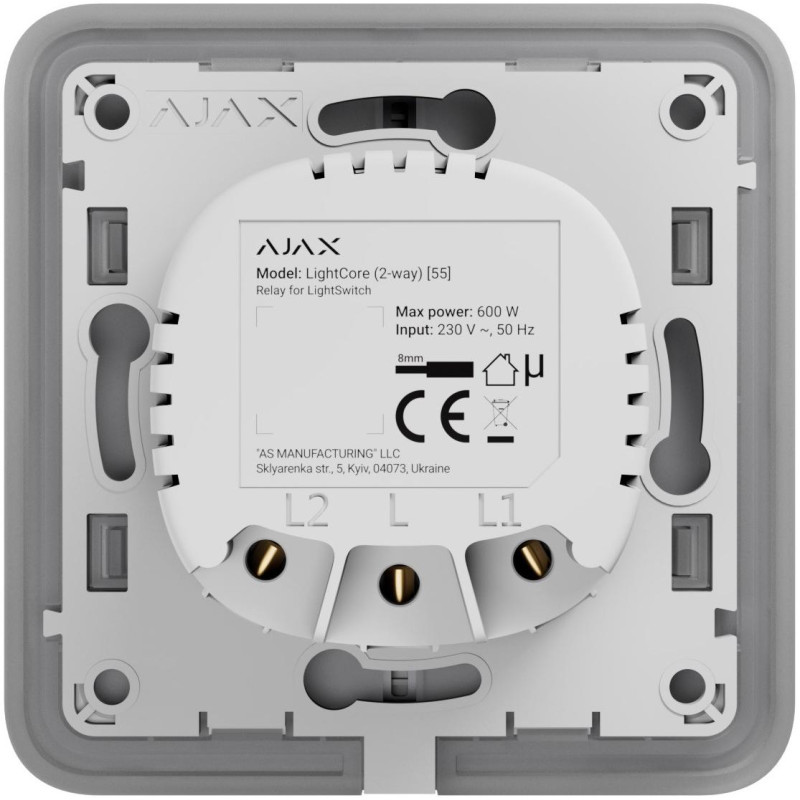 Ajax Реле двоклавішний вимикач LightCore 2-gang for LightSwitch Jeweler, бездротовий (000029718)