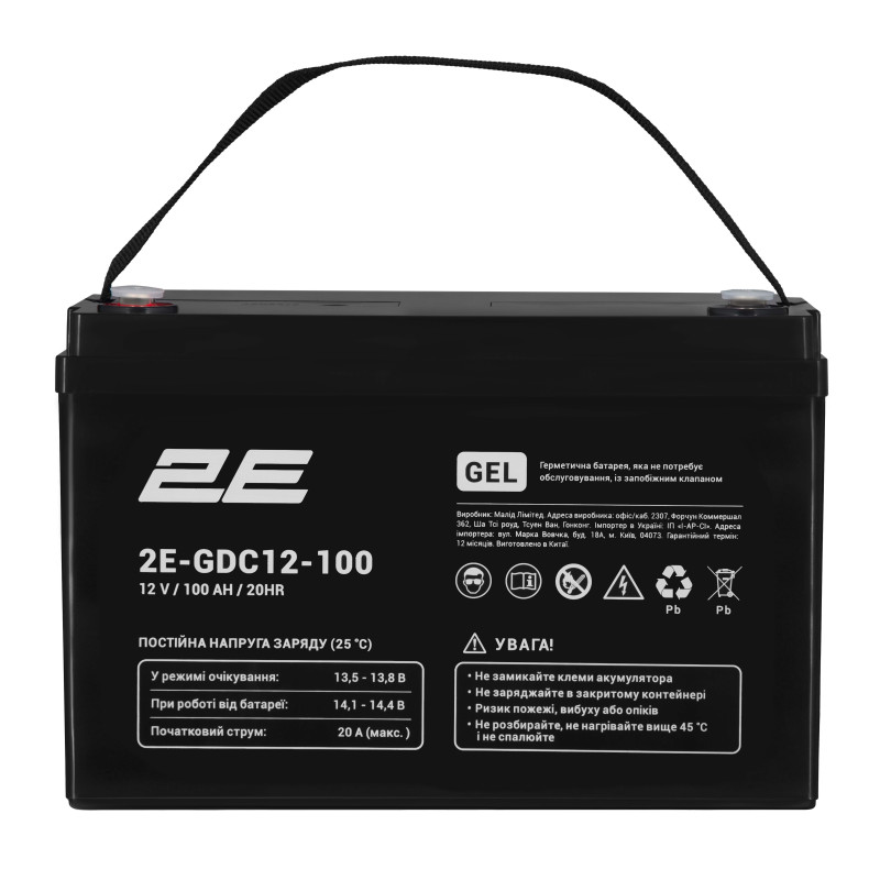 Особливості товару Акумуляторна батарея 2E GDC, 12В, 100А•год, GEL