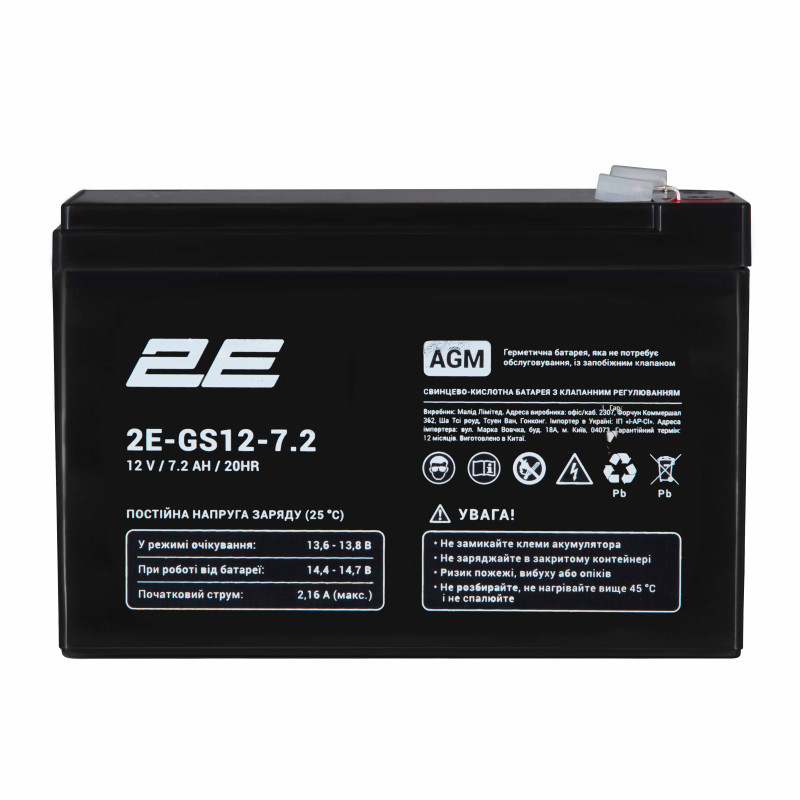 Особливості товару Акумуляторна батарея 2E GS, 12В, 7.2А•год, AGM