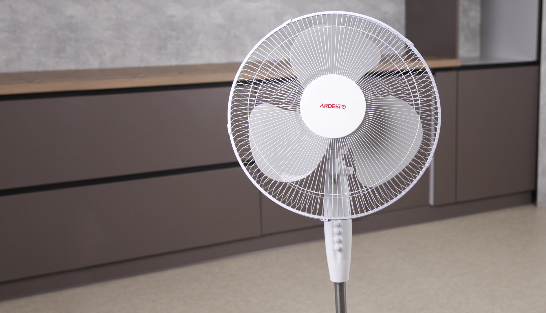Опис Вентилятор ARDESTO підлоговий, 40см, 45Вт, опора хрестовина, білий