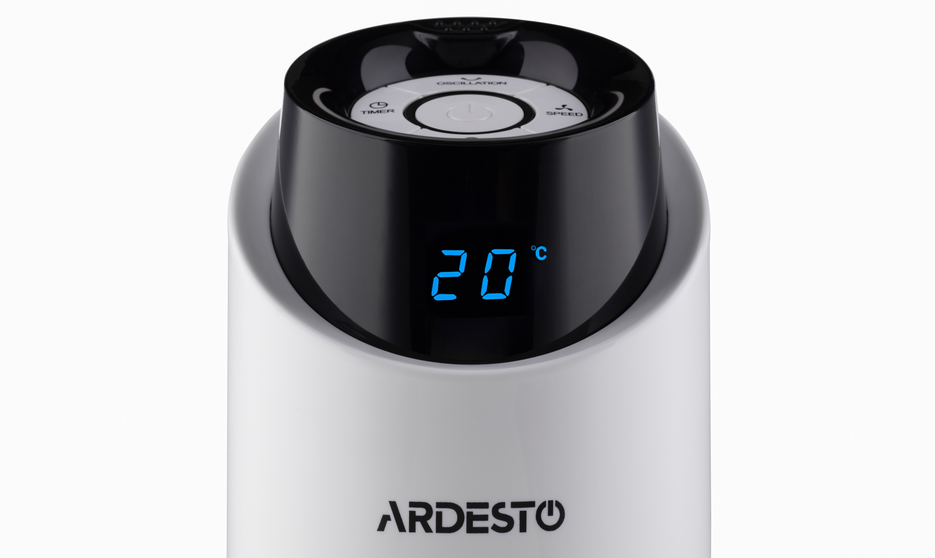 Вентилятор отримав LED-дисплей, на якому відображається температура навколишнього середовища. На верхній частині розташована панель керування, а для зручного зберігання пульту ДУ передбачено спеціальний відсік. Серед налаштувань – три режими швидкості, обертання, таймер до 15 годин, а також режим морського бризу.