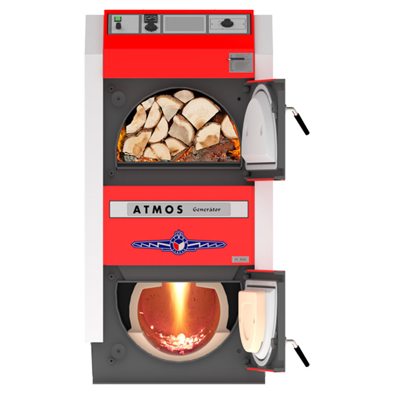 Atmos DC 40GS – двокамерний газогенераторний котел, призначений для екологічного та ефективного опалення приміщень. Принцип роботи котлів серії DC GS полягає в підсушуванні у верхньому відсіку деревини і нагріванню її до високої температури, після чого піролізні гази, що виділяються, направляються в нижній відсік, де згоряють при вищій температурі. Такий механізм роботи забезпечує високий ККД та низький рівень відходів (зі 100 кг дров у залишку утворюється 0.5 кг попелу). Час горіння палива у котлі при повному завантаженні становить 6-8 годин.