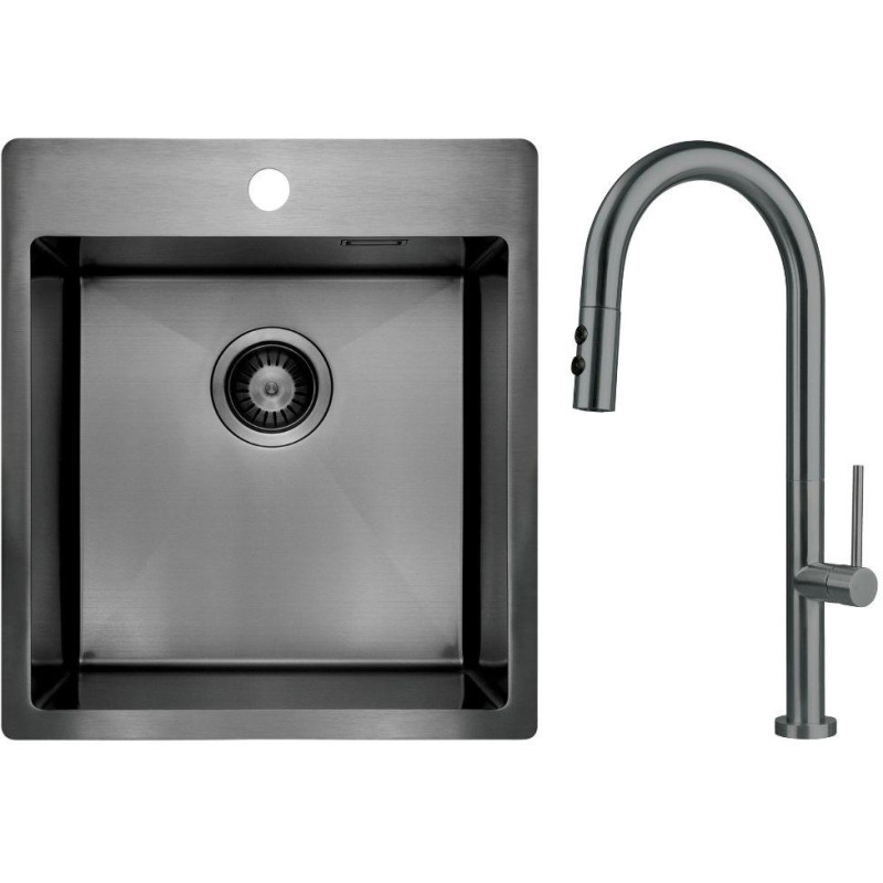 Deante Набір для кухні Olfato стальна мийка ZPO_D10A + зміш. BQO_D72M, титан (ZPOED10A)