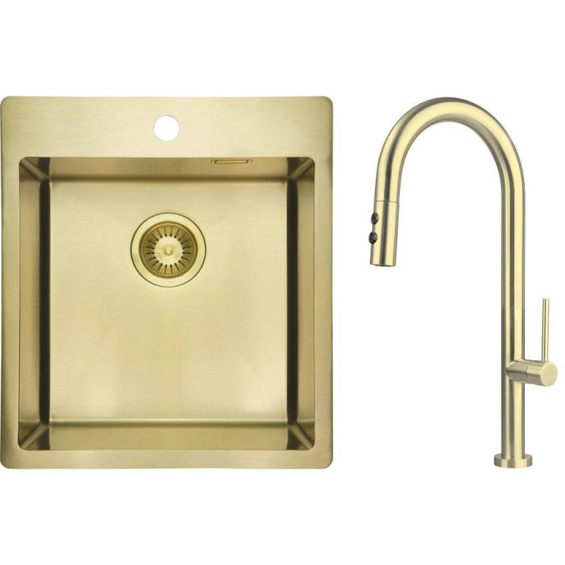 Deante Набір для кухні Olfato стальна мийка ZPO_R10A + зміш. BQO_R72M, брашоване золото (ZPOER10A)