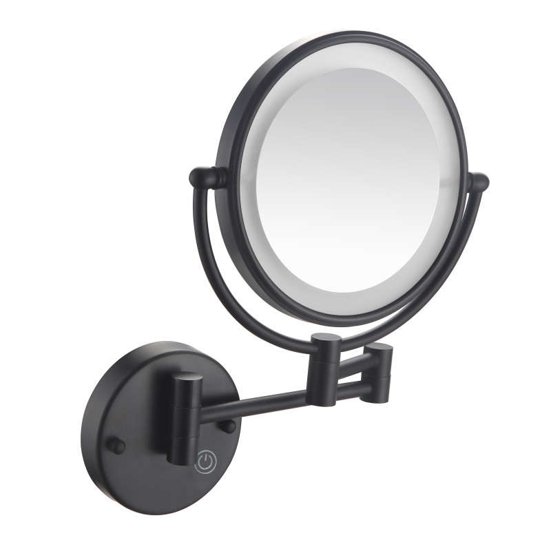 Дзеркало кругле, двостороннє, чорне матове покриття, високоякісна латунь, збільшення 1Х та 3Х, чутлива сенсорна кнопка включення, підсвічування, зовнішнє підключення, гарантія 3 роки