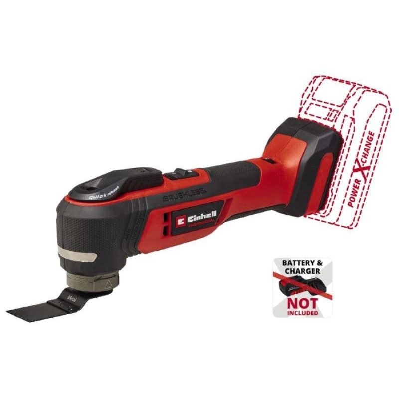 Акумуляторний багатофункціональний інструмент Einhell Professional TP-MG 18 Li BL - Solo неймовірно універсальний. Будучи частиною сімейства Power X-Change, його можна поєднувати з усіма системними акумуляторами та зарядними пристроями. Інструмент приводиться в рух безщітковим двигуном PurePOWER для підвищення потужності та тривалості роботи. Заміна аксесуарів без інструментів можлива завдяки швидкознімній застібці та магнітному тримачу. Швидкісна електроніка, світлодіодне освітлення, антивібраційна головка пристрою та м’яка рукоятка забезпечують безпечну роботу. В комплект поставки входять дельта-шліфувальна пластина, наждачний папір 9 шт, скребок, занурювальні та сегментні пилкові полотна. В комплект поставки не входять акумулятор і зарядний пристрій.