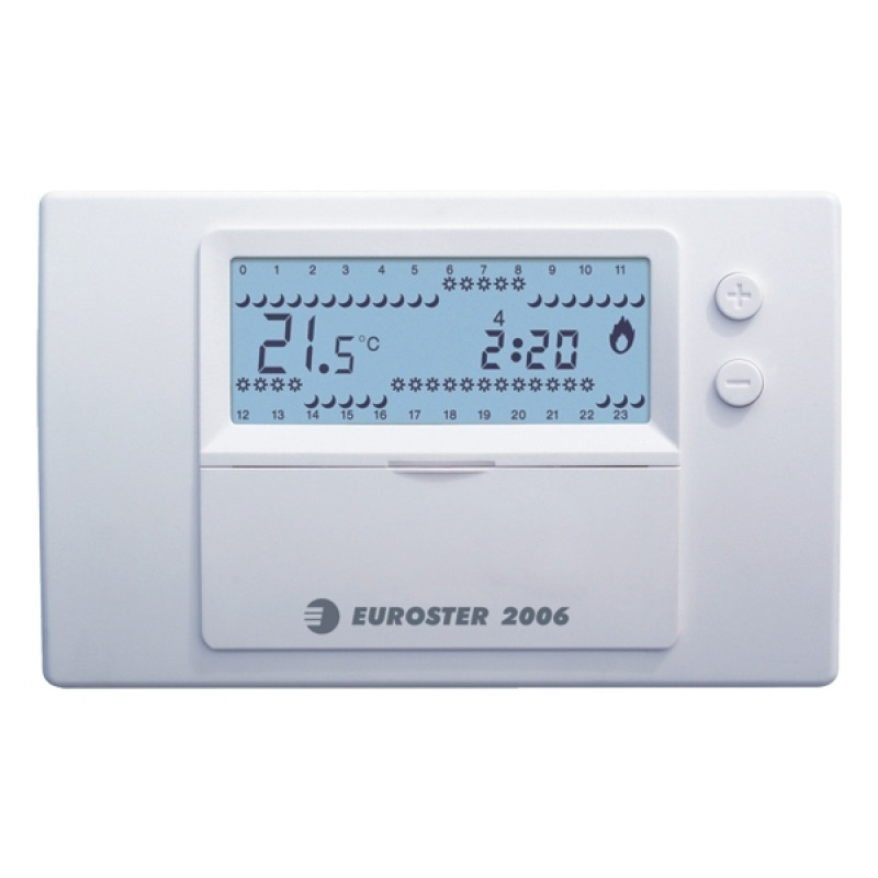 Терморегулятор Euroster 2006 дає можливість роботи джерела тепла з постійним налаштуванням, тимчасовою зміною температури і налаштуванням захисту від замерзання 5ºC