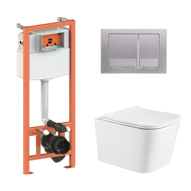 Комплект: Qtap Crow Ultra Quiet унітаз підвісний QT05335171W + Nest комплект інсталяції 4в1 (квадратна клавіша Satin) QT0133M425 + M06029SAT