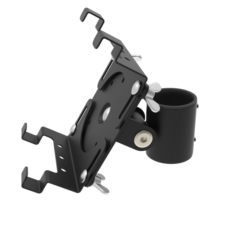 Регульовані кути захоплення дозволяють встановити й закріпити планшет діагоналлю від 7 до 12 дюймів. Кріплення фіксується, кут нахилу регульований. Застосовується для оснащення робочого місця касира, офіціанта або бармена, де передбачається встановлення планшетного ПК. Усі кабелі зручно ховаються в основу, тим самим надаючи ергономіку та естетичний вигляд на касовому місці.