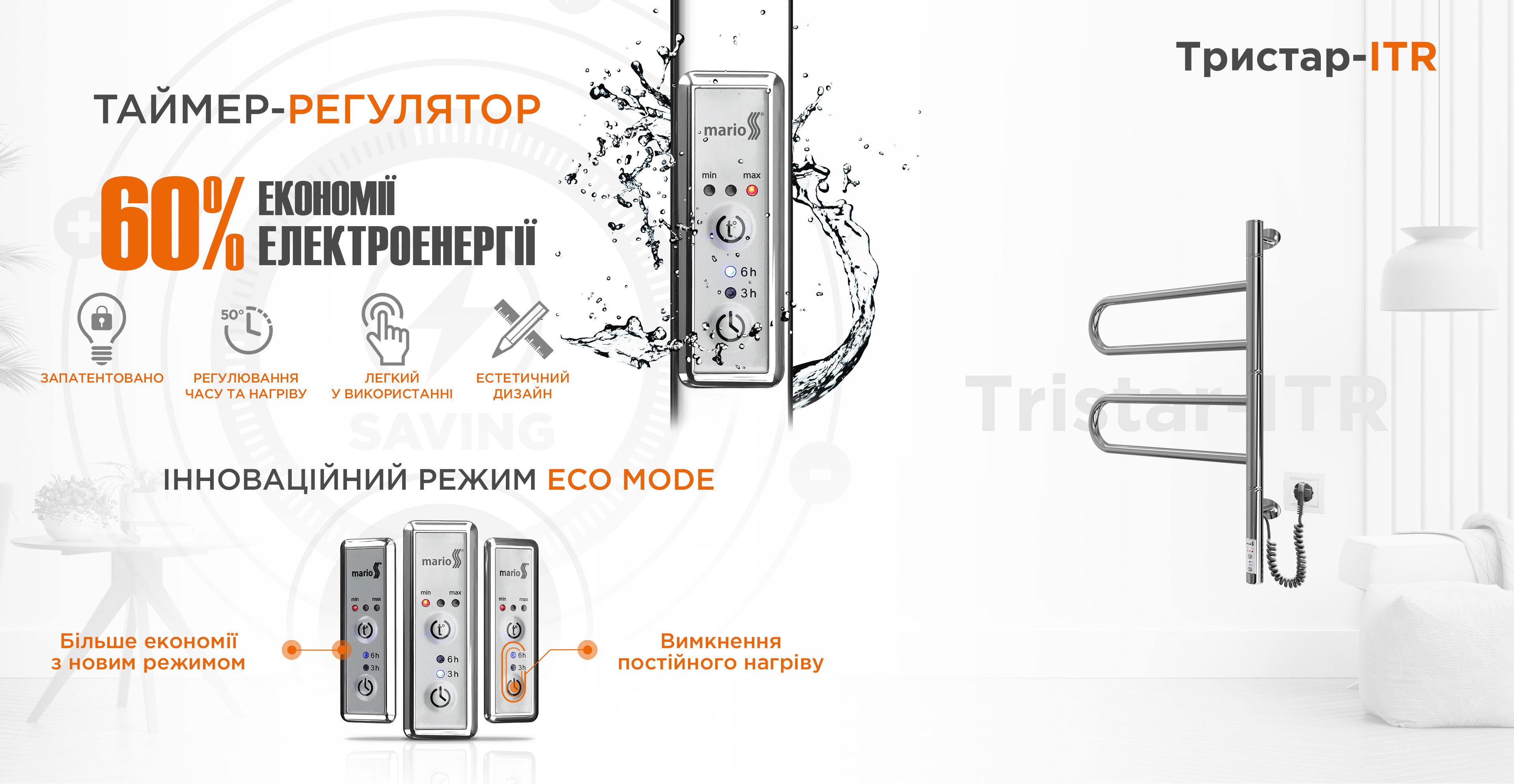 - У конструкції пристрою передбачено регулятор температури для економії електроенергії.