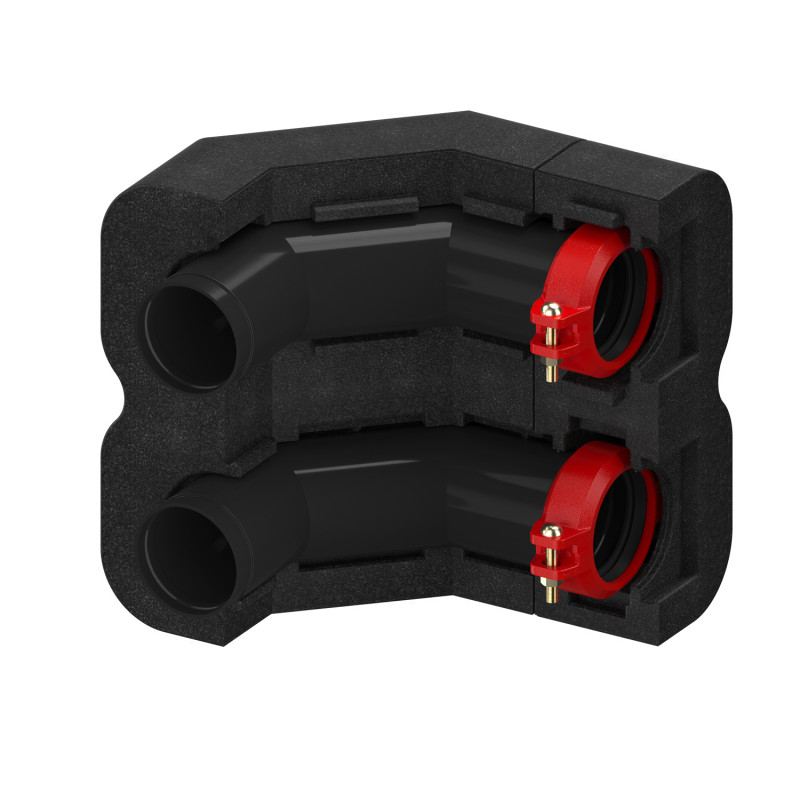 Комплект включає в себе кутові фітинги, які дозволяють з'єднувати труби під кутом 90 градусів. Вони мають просту конструкцію зі штифтовим з'єднанням, що забезпечує легку установку і монтаж.