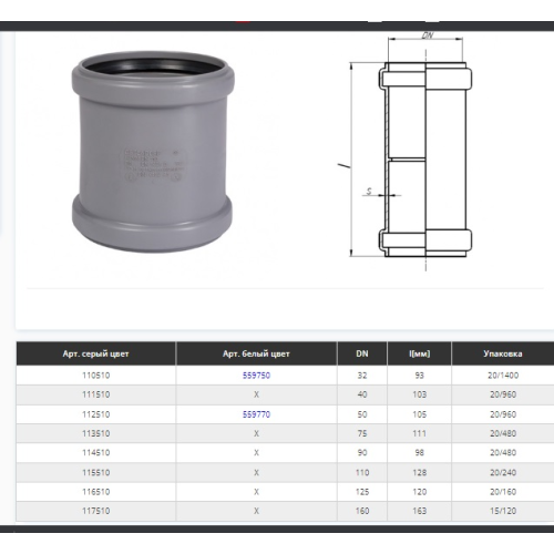 Муфта d=32 мм Сірий (17005)