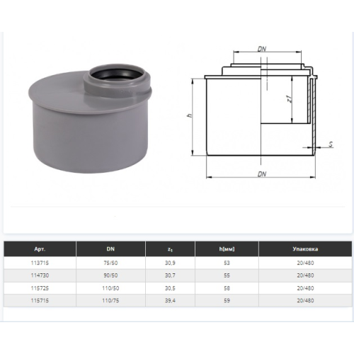Перехід ексцентричний d=110/50 мм Сірий (175725-05)