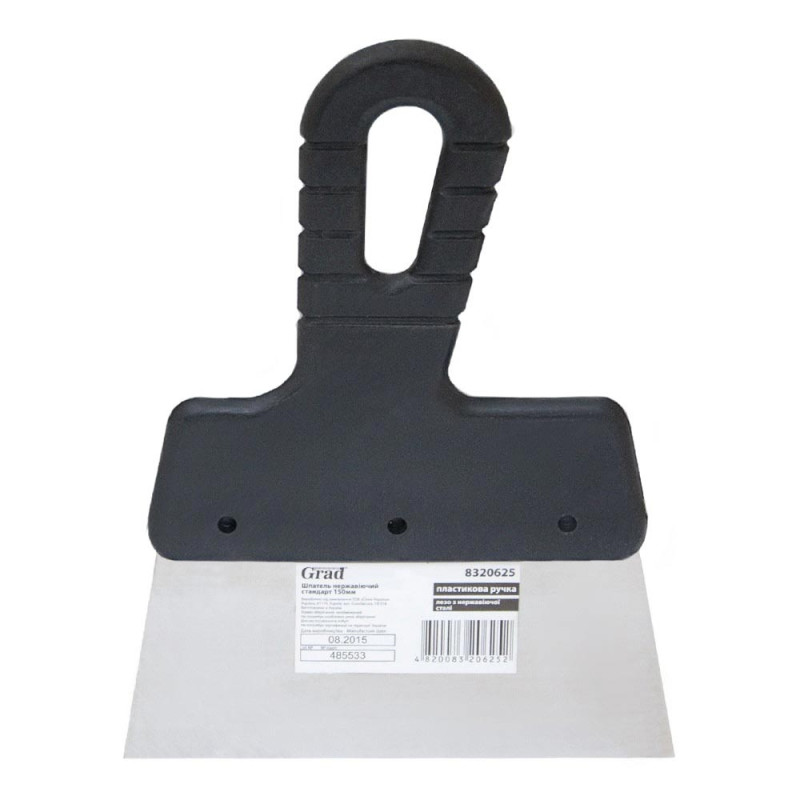 Шпатель стандарт (нержавіючий) 150мм GRAD (8320625) яке має змінну товщину для додаткової гнучкості та пружності. Інструмент оснащений пластиковою ручкою. Шпатель застосовується для оштукатурювання зовнішніх та внутрішніх стін, стель, для нанесення шпаклівок, мастик і густих клейових сумішей.