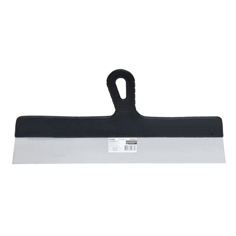 Шпатель стандарт (нержавіючий) 450мм GRAD (8320675) яке має змінну товщину для додаткової гнучкості та пружності. Інструмент оснащений пластиковою ручкою. Шпатель застосовується для оштукатурювання зовнішніх та внутрішніх стін, стель, для нанесення шпаклівок, мастик і густих клейових сумішей.