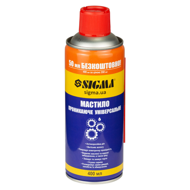 Універсальне проникаюче мастило 400мл SIGMA (6370171) - це з'єднання з активних речовин володіє широким спектром властивостей, що дозволяє продукції мати велику сферу застосування.