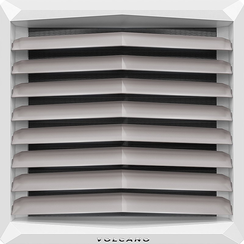 Максимальні параметри теплоносія теплообмінника 130 ℃ і 1,6 МПа. Конструкція: мідний колектор і змійовики з ребрами-ламелями з алюмінію. Патрубки для підключення теплоносія (зовнішня різьба 3/4") знаходяться на задній панелі агрегату. Наш типоряд включається застосування однорядних теплообмінник в VOLCANO VR1 (5-30 кВт), дворядних теплообмінників в VOLCANO VR mini (3-20 кВт) та VOLCANO VR2 (8-50 кВт), трирядних теплообмінників в VOLCANO VR3 (13-75 кВт).