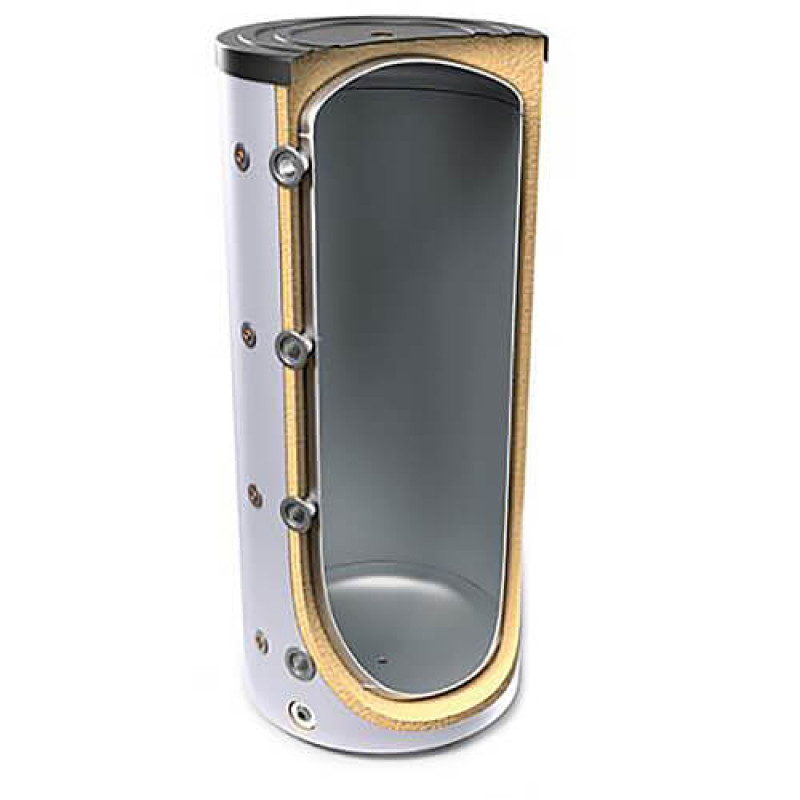 Акумулятор тепла великого об'єму, оснащений внутрішнім баком із сталі без покриття, зовнішнім термоіндикатором, високоефективною теплоізоляцією з пінополіуретану товщиною 100 мм, PVC кожухом, захисним клапаном. Накопичувач відрізняється вузьким дизайном і має вертикальну установку для підлоги.