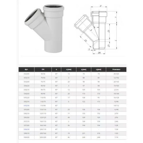 Трійник 45* 110/ 58 мм (безшумний) (335220-05)