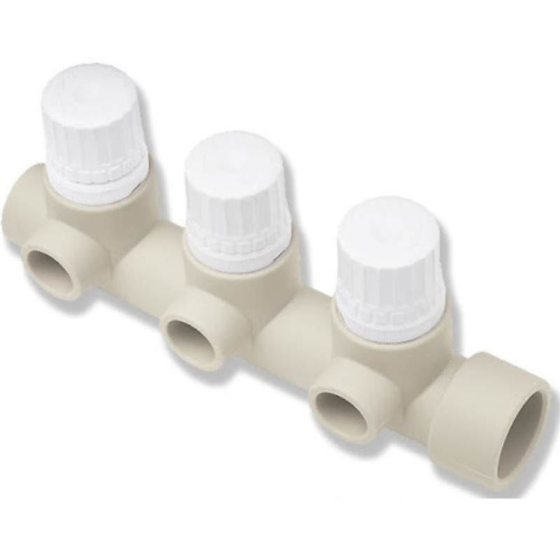 Колектор на 3 виходи має термостатичні вентилі, що дозволяють контролювати температуру в кожному окремому приміщенні. Кожен вихід має такий вентиль, який автоматично регулює пропускання гарячої води залежно від встановленої температури. Це дозволяє оптимізувати споживання енергії і забезпечити комфортні умови в кожній кімнаті.
