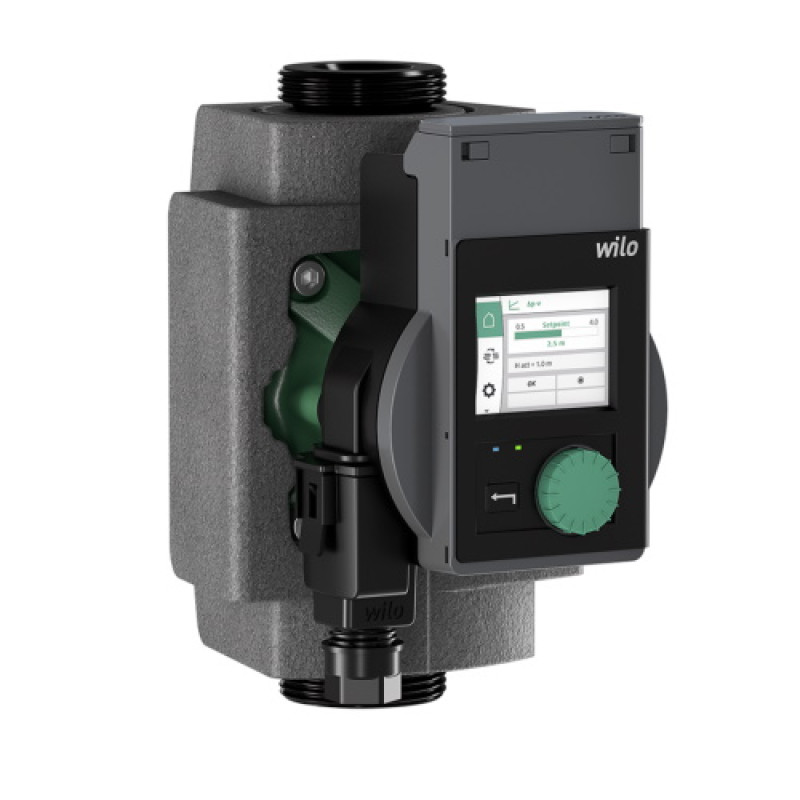 Циркуляційний насос з мокрим ротором з різьбовим з'єднанням, стійкий до струмів блокування ЄС-двигун та вбудований електронний пристрій регулювання потужності.