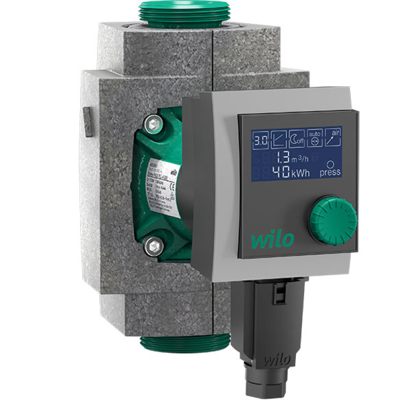 Циркуляційний насос з мокрим ротором з різьбовим з'єднанням, стійкий до струмів блокування ЄС-двигун та вбудований електронний пристрій регулювання потужності.