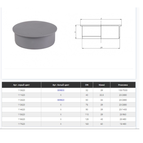 Заглушка d=50 мм Сірий (172620-05)