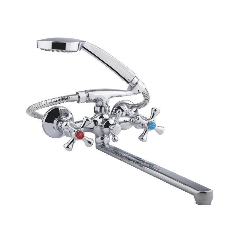 Змішувач для ванни Lidz (CRM) 75 21 143 з довгим виливом виконаний з якісного матеріалу із шланговим підключенням. Душовим шлангом і лійкою. Для вмикання потоку води передбачено два вентиля з нанесеним маркуванням Х+Г води. Для перемикання на душ - поворотний дивертор у вигляді важеля. Настінний монтаж здійснюється за допомогою кріпильних деталей, які комплектуються разом зі змішувачем. Круглі розетки приховають всі погрішності установки.