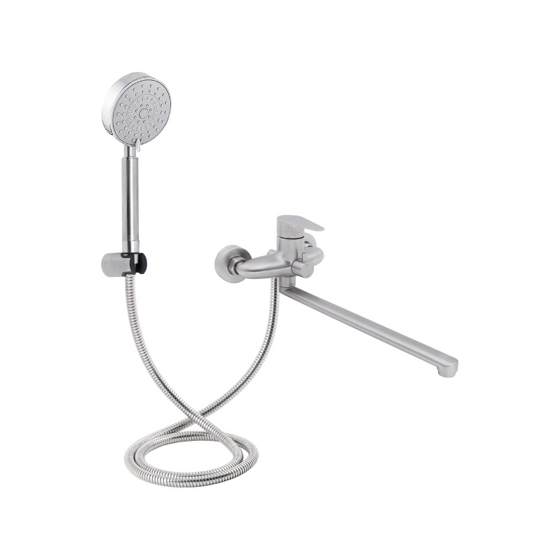 Змішувач для ванни Lidz (NKS) 09 35 005-1 виконаний з нержавіючої сталі, що гарантує тривалий термін експлуатації. Для включення подачі води досить підняти важіль і повернути його в необхідну сторону. Змішувач монтується на стіну над ванною за допомогою кріпильних елементів, які входять в комплект. Круглі розетки приховають похибки встановлення на обробці. Тримач лійки кріпиться також на стіну. Таким чином, ваші руки будуть вільні під час душових процедур.